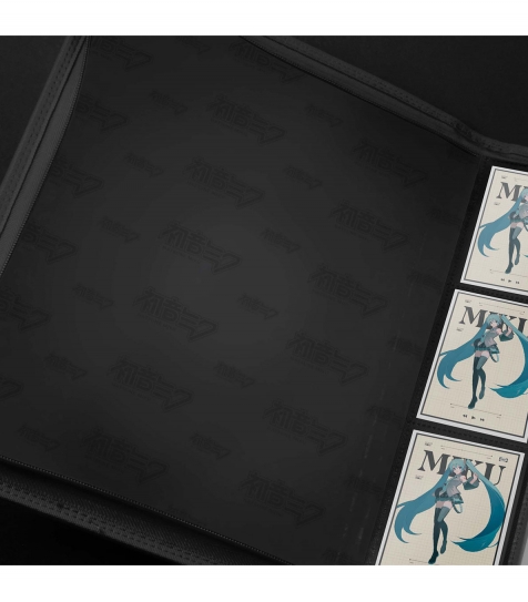 Álbum 9-Pocket Zippered PRO-BINDER® 360 cartas - Hatsune Miku - Ultra Pro. Carpeta con ilustración oficial de Hatsune Miku y cubierta acolchada en leatherette con detalles en relieve y cierre con cremallera. Incluye 20 páginas de 9 bolsillos de carga lateral, con capacidad para hasta 360 cartas tamaño estándar con fundas Ultra PRO Deck Protector®. Páginas con fondo negro de baja fricción que separa los bolsillos y realza la presentación de las cartas. Fabricado con materiales libres de PVC y sin ácido. Producto ideal para tiendas y distribuidores especializados en TCG y coleccionismo.