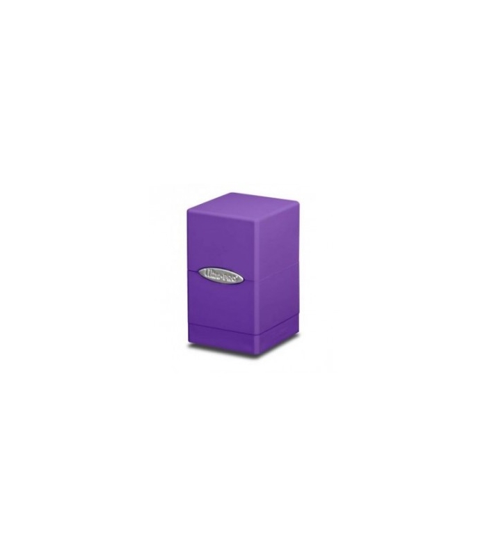 Caja para mazo de cartas Satin Tower de la marca Ultra Pro. De gran calidad y solidez. Color Púrpura. Para 100 cartas de tamaño standard enfundadas. Para juegos como Magic the Gathering o Force of Will. Con un compartimento inferior para accesorios Acabado satinado suave. Recubrimiento UV brillante.