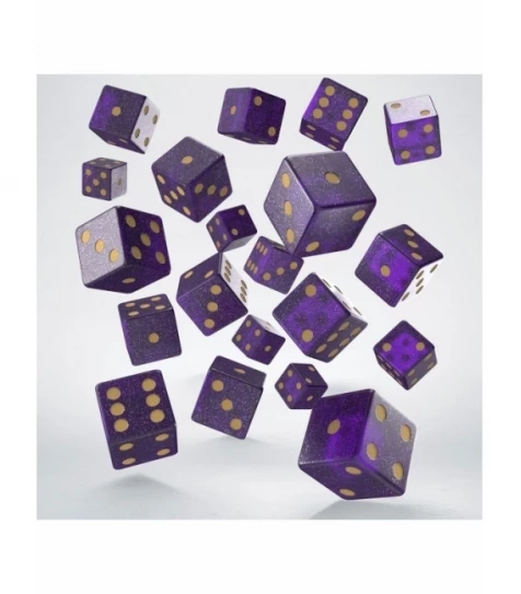 Pack de 20 dados poliédricos D6 en colores morado y oro. Diseño de alta calidad de la marca Q Workshop, perfecto para ampliar el surtido de tiendas especializadas en rol y wargames. Enfoque en distribución y venta al por mayor para comercios y distribuidores.