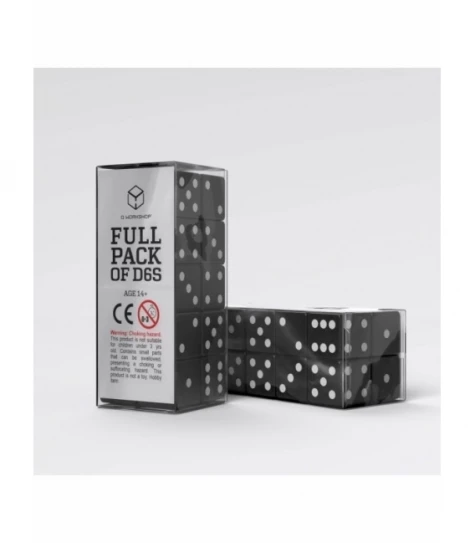 Dados Full Pack of D6s Negro y Blanca (20 unidades) - Q Workshop