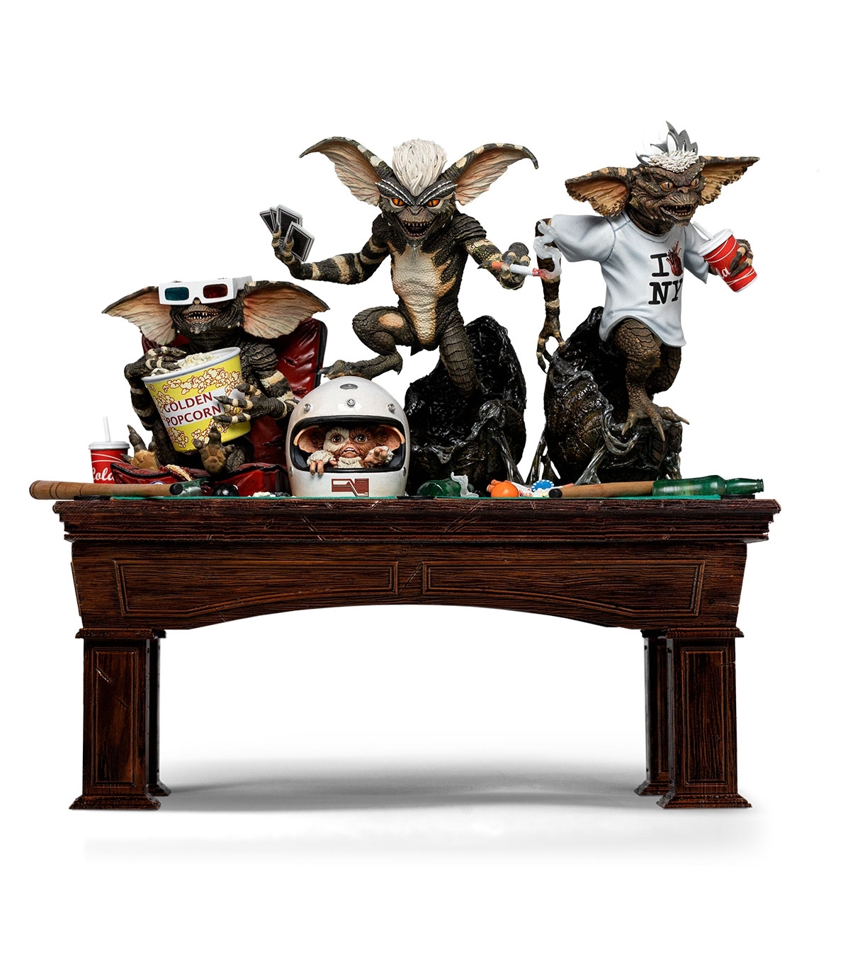 Figuras Gremlins Diorama 24,3 cm de Iron Studios. Basada en la famosa licencia Gremlins. Iron Studios presenta con orgullo la figura "Diorama Gremlins - Gremlins - Art Scale 1/10", un homenaje caótico y divertido a las traviesas criaturas del clásico de culto. Esculpido en resina de alta calidad y pintado a mano con todo detalle, este diorama a escala 1/10 desborda personalidad y riqueza visual. Una pieza nostálgica ideal para los fans del cine de terror y comedia de los años 80.