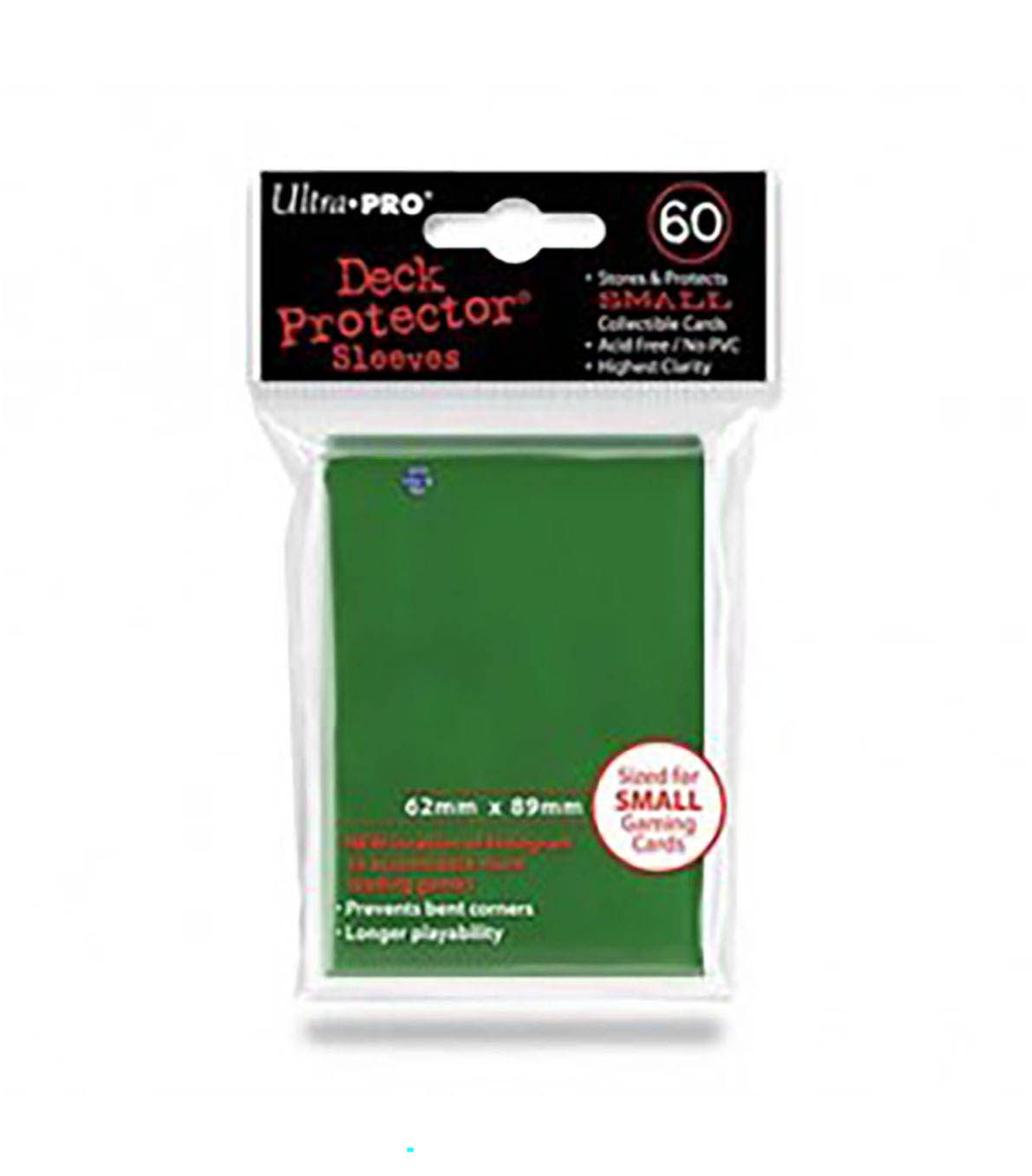 Fundas Ultra Pro de tamaño small 62x89 para juegos de cartas como Yu-Gi-Oh!. Color Verde Paquete de 60.