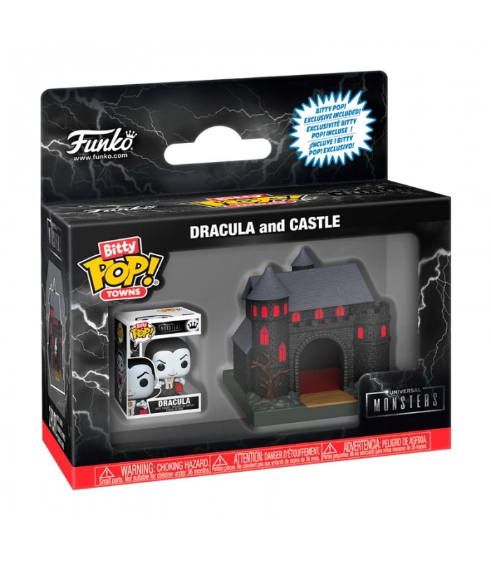 Funko Bitty POP! Town Dracula and Castle - Universal Monsters Figura en vinilo de aproximadamente 2,3 cm y 5,1 cm de altura. Presentado en caja con ventana.