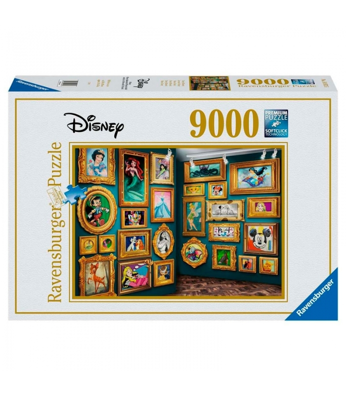 El Puzzle Ravensburger Museo Disney de 9000 Piezas es uno de los más grandes y bonitos puzzles de la marca Ravensburger. En la imagen podemos ver un bonito museo lleno de cuadros de los personajes Disney más populares. Sin duda un puzzle de excelente calidad que te proporcionará horas y horas de entretenimiento.