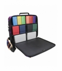 Bolsa de hombro para cartas TCG con interior personalizable mediante divisores ajustables. Dimensiones internas: 39 × 32 × 8,5 cm, perfecta para deck boxes, cajas de cartón, dados y accesorios. Bolsillo frontal con cremallera ideal para sobres, fundas, contadores, top loaders y tapetes. Exterior resistente a la intemperie, con detalles en piel sintética, logo ENHANCE y correa acolchada. Diseñada para transporte cómodo entre tiendas, torneos y eventos. Producto ideal para venta al por mayor en tiendas de JCC.