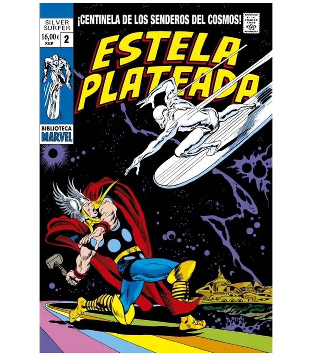 Es más que un cómic: es una máquina del tiempo. Manipulado por Loki, Estela Plateada visita Asgard, se enfrenta a Thor y conoce al resto de los dioses nórdicos. La dramática historia de Al Harper, el héroe desconocido que salvó a la humanidad. La clave para que Estela Plateada escape de la Tierra... ¿se oculta en un viaje en el tiempo? ¡Biblioteca Marvel, como siempre y mejor que nunca! ¡No puedes perderte esta edición histórica!