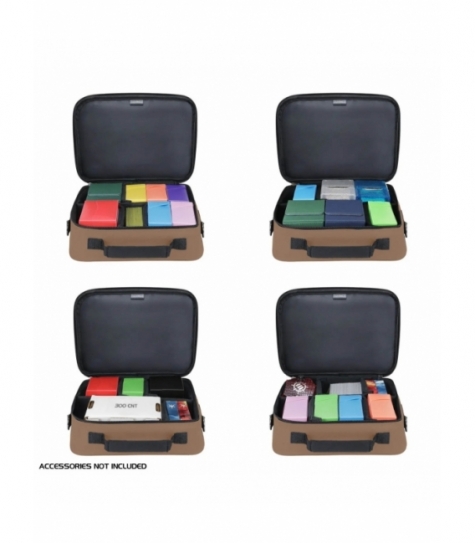 Bolsa de hombro compacta para cartas coleccionables, con divisores ajustables para organizar cartas enfundadas, deck boxes y cajas de almacenamiento. Dimensiones interiores: 30 × 23,5 × 11 cm. Incluye bolsillo frontal con cremallera para sobres, dados, contadores y accesorios pequeños. Diseño resistente al agua, con detalles en piel sintética y correa acolchada para transporte cómodo. Ideal para tiendas y distribuidores de juegos de cartas como Magic: The Gathering, Pokémon y Yu-Gi-Oh!