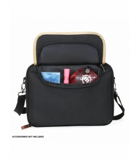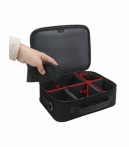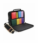 Bolsa compacta y elegante para almacenamiento de cartas, con interior personalizable mediante divisores ajustables. Compatible con mazos enfundados, deck boxes y cajas de cartón. Incluye bolsillo frontal con cremallera para dados, sobres, contadores y accesorios pequeños. Exterior resistente a la intemperie, con detalles en piel sintética y correa acolchada. Dimensiones interiores: 28 × 21,5 × 8,5 cm. Ideal para tiendas y distribuidores de juegos de cartas coleccionables.