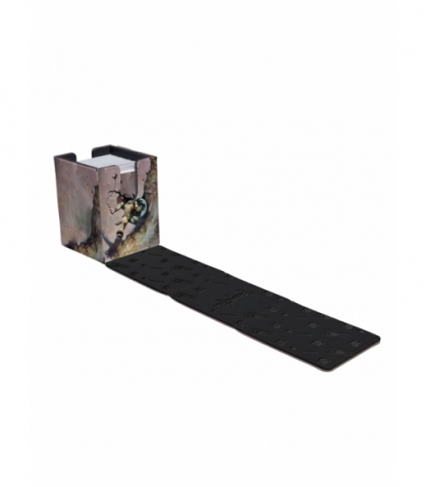 Descubre la caja Alcove Flip con diseño "Warrior with Ball and Chain" de Frank Frazetta. Su acabado en polipiel a todo color y cierre magnético aseguran una protección elegante. Incluye accesos laterales y capacidad para hasta 100 cartas doble enfundadas. Una opción práctica y artística para llevar tu mazo con seguridad.