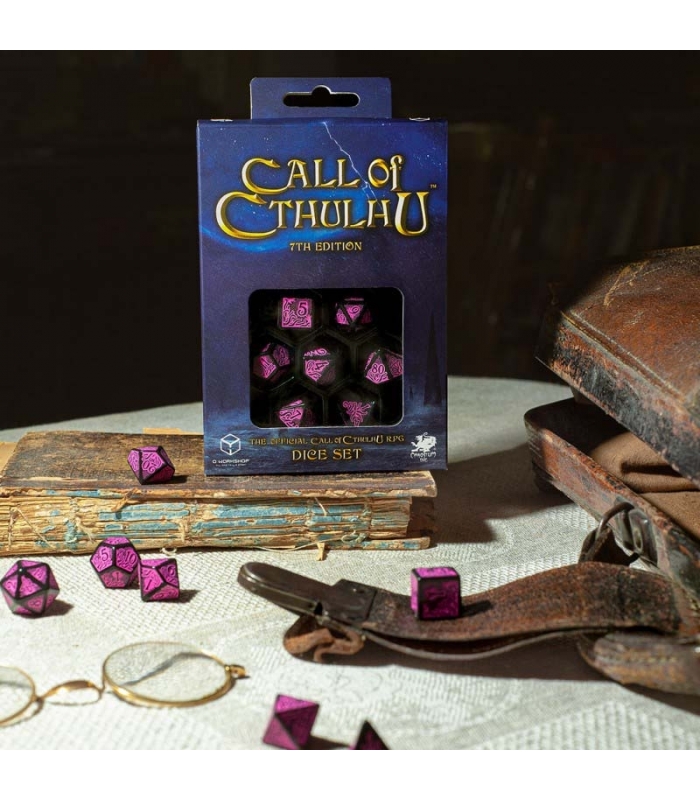 Dados Call of Cthulhu 7º edición en negro y magenta (7 unidades) - Q Workshop