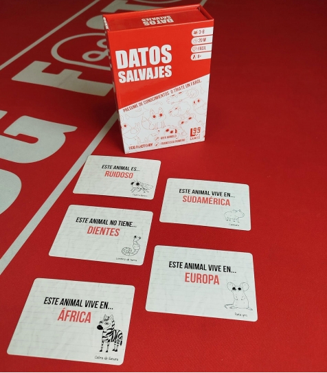 Datos Salvajes Diseñado por Kier Arnold e ilustrado por Francesca Romero. ¡Demuestra cuánto sabes… o finge que lo sabes todo! ¿Podrías nombrar un animal que viva en ciudades, tenga patas y cola? ¿Y si además tiene orejas grandes y es… ¡espinoso!? En Datos Salvajes las pistas se acumulan y la tensión crece. Deberás pensar rápido, improvisar y, cuando sea necesario, farolear como un maestro. Cada turno añade un nuevo rasgo, y tendrás que acertar o arriesgarte a que te desenmascaren. Un party game salvaje, lleno de risas e ingenio, donde ganar depende tanto de tus conocimientos como de tu habilidad para convencer. Fácil de aprender, imposible jugar solo una vez.