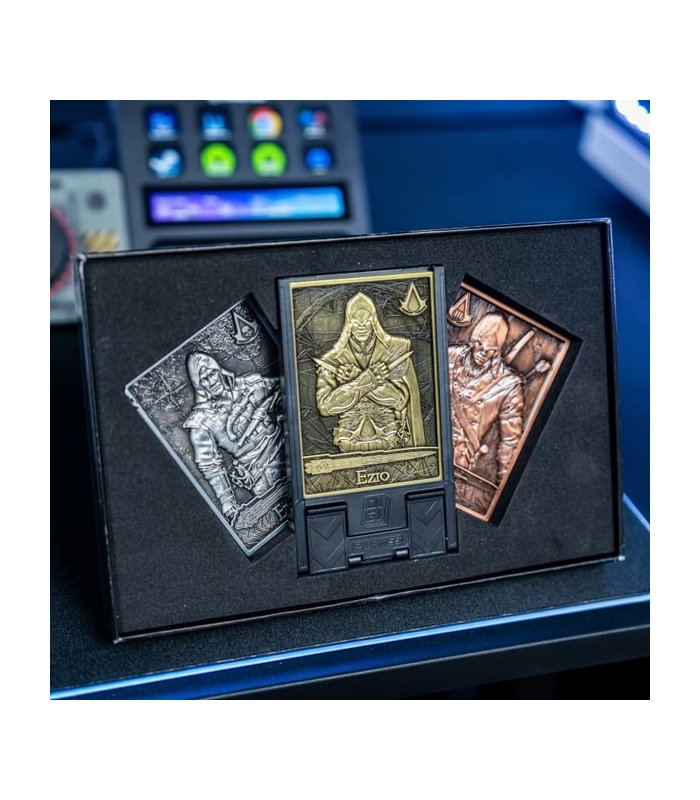 <p>-3 placas de metal coleccionables con personajes icónicos de Assasin's Creed</p>