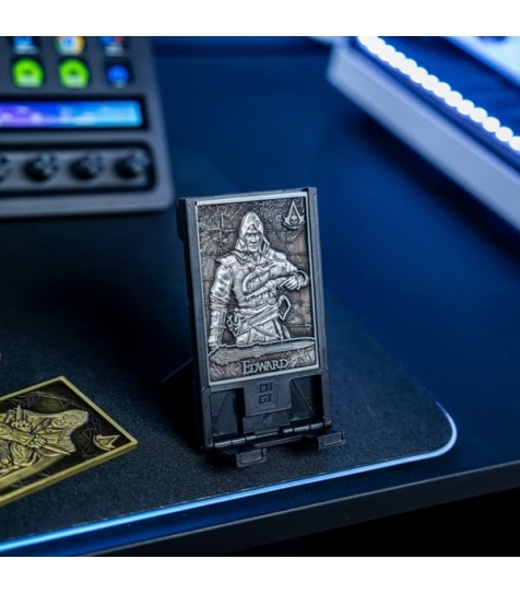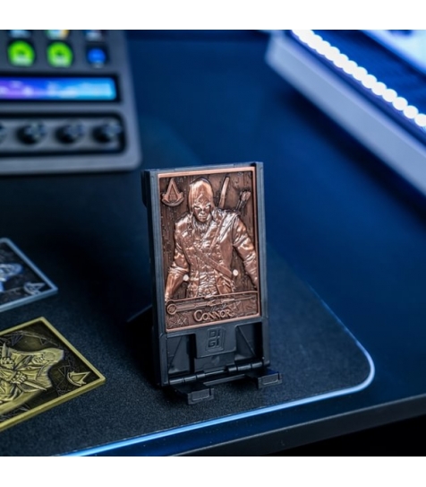Ofrece a tus clientes lo mejor de la cultura pop y la tecnología con este pack de Exquisite Gaming. Incluye tres placas de metal coleccionables con licencia oficial Assasin's Creed, cada una con un código de realidad aumentada para experiencias digitales inmersivas. El pack se completa con un Digistand personalizable que funciona como soporte para móviles. Ideal para coleccionistas y aficionados a los videojuegos.