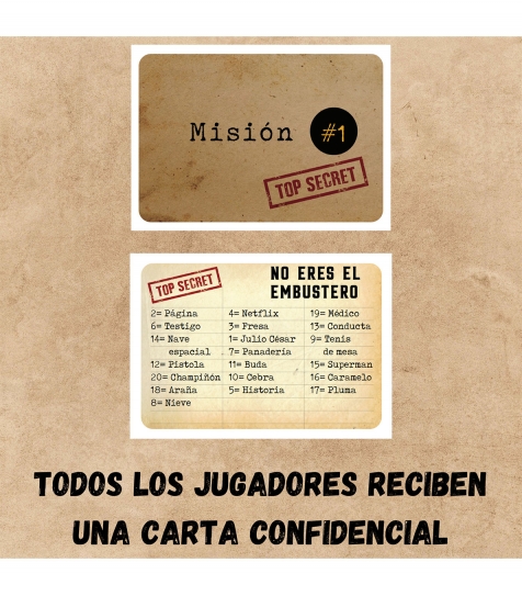 Juego de cartas "El Embustero" de deducción y bluff. Ideal para venta al por mayor en tiendas especializadas en party games y juegos familiares. Para grupos de 4 a 8 jugadores. Fácil de explicar, altamente rejugable y perfecto para noches de juegos, reuniones o eventos sociales. Incluye mecánicas de palabras, sospechas y creatividad. Éxito internacional con más de 1.000.000 de jugadores. Distribución recomendada para público familiar, casual y social gamer.