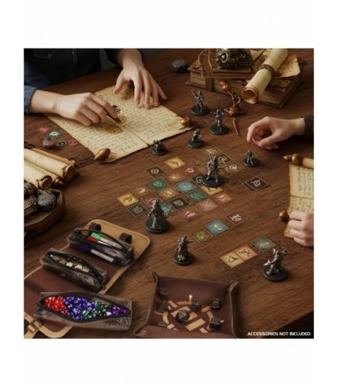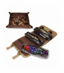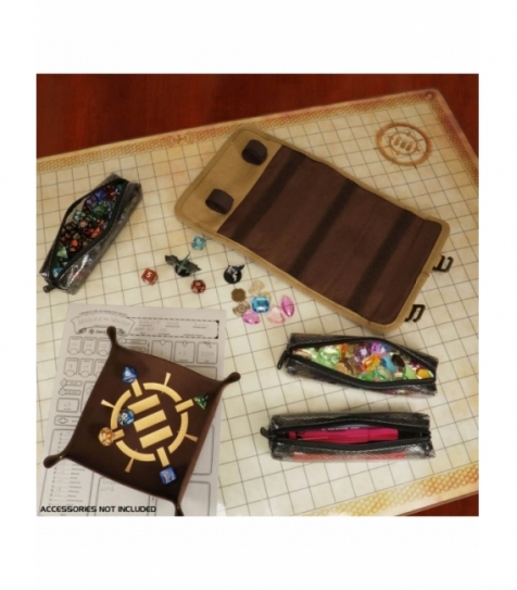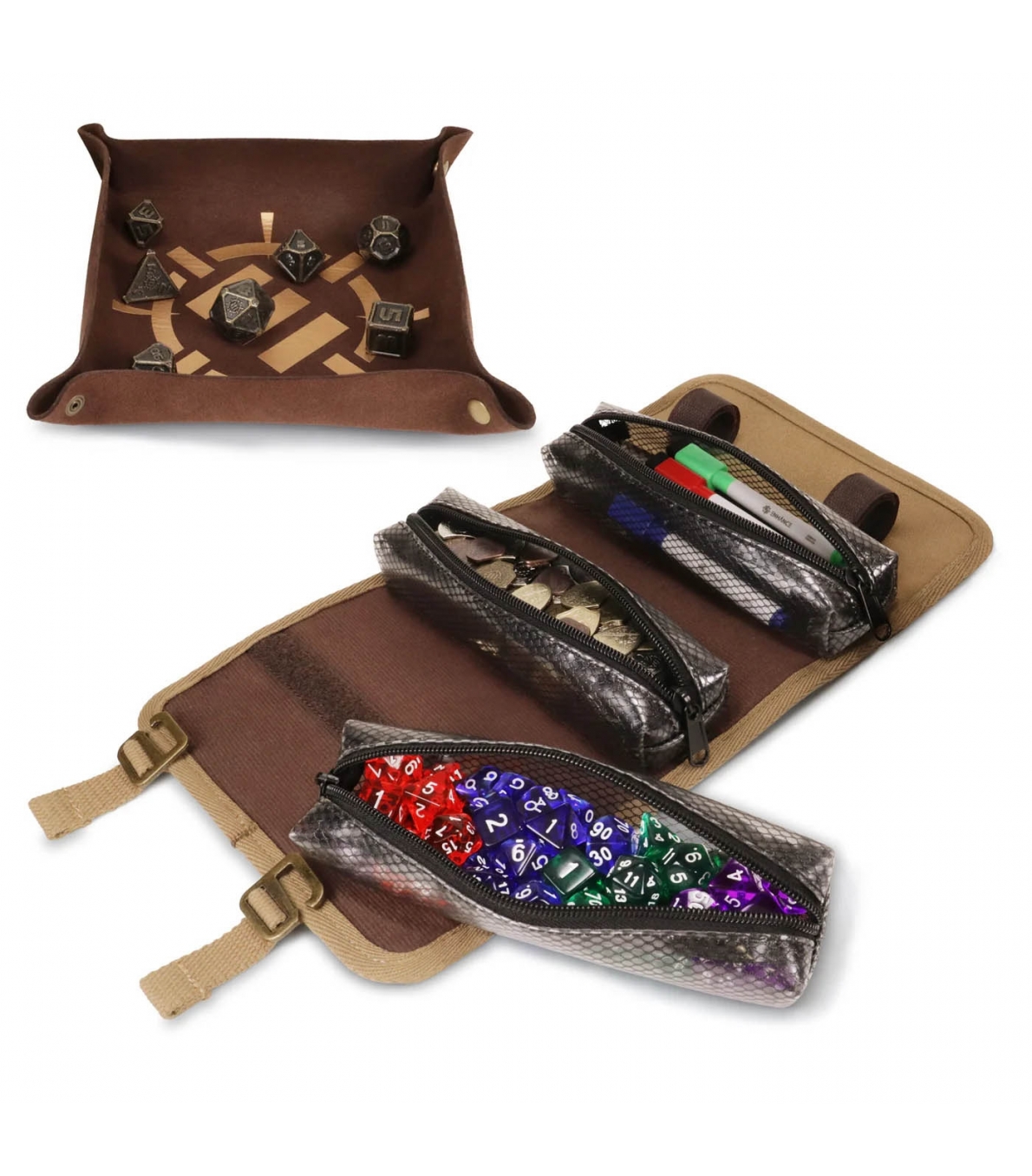 Estuche para dados fabricado en lona resistente, ideal para transporte entre sesiones de juego. Incluye bandeja desmontable de 13 × 13 cm para tiradas seguras y fluidas. Tres bolsillos extraíbles con cremallera (18,5 × 4,5 × 3 cm) para organizar dados, tokens y accesorios. Capacidad de almacenamiento para más de 150 dados. Se engancha fácilmente a mochilas de la serie Tabletop. Venta al por mayor para tiendas y distribuidores especializados en juegos de mesa y rol.