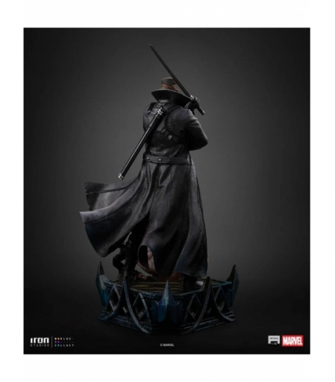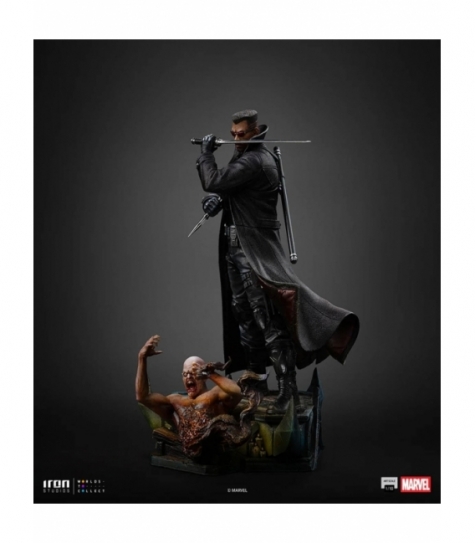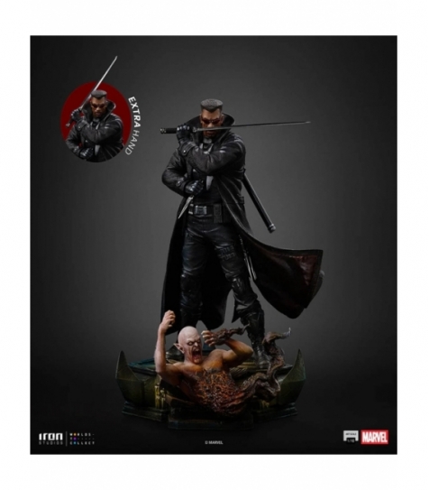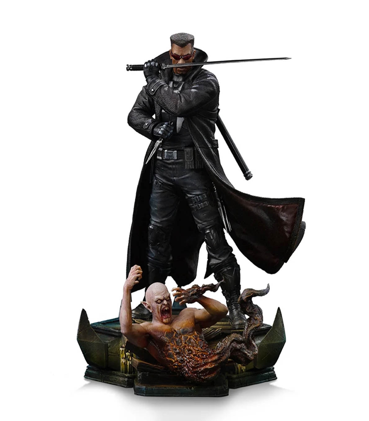 Blade – Estatua Art Scale 1/10 – Marvel – Iron Studios. Figura del icónico cazador de vampiros en pose de combate. Incluye brazos intercambiables para múltiples estilos de exhibición. Fabricada en polystone con detalles en resina, PVC y metal; pintada a mano. Distribución para tiendas especializadas en figuras de acción, cómics y cine.