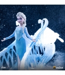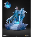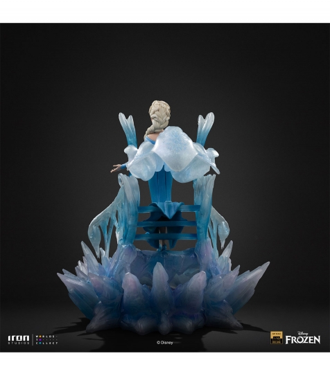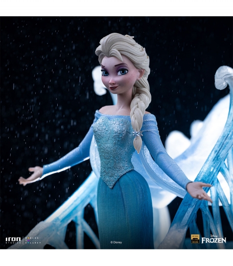 Estatua Elsa Deluxe Art Scale 1/10 basada en Disney Frozen. Representación majestuosa de la Reina de Arendelle con efectos de hielo translúcido. Fabricación en polystone con posibles partes en resina, PVC y metal. Pintura manual para realzar texturas y detalles. Distribución y venta al por mayor para tiendas y distribuidores.