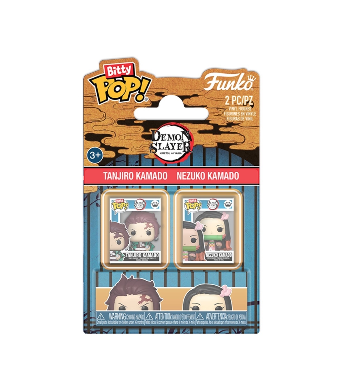 Funko Bitty POP! 2-Pack Tanjiro Kamado & Nezuko Kamado - Kimetsu no Yaiba Figura en vinilo de aproximadamente 9,8 cm y 10,3 cm de altura. Presentado en caja con ventana.