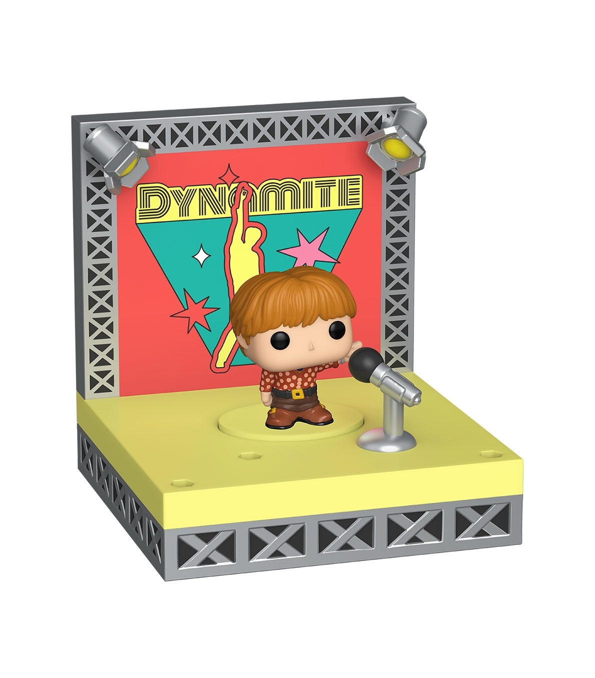 Bitty Pop! Stages, figuras de vinilo miniatura (2.5 cm) de Funko, diseñadas para coleccionar y exhibir. Destacan por incluir un escenario escénico temático —como la serie de BTS "Dynamite"