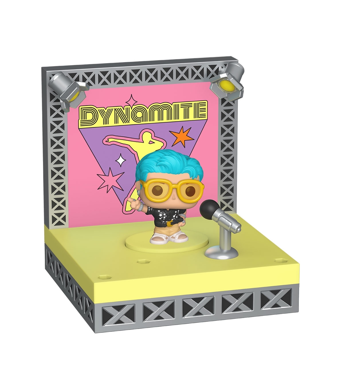 Bitty Pop! Stages, figuras de vinilo miniatura (2.5 cm) de Funko, diseñadas para coleccionar y exhibir. Destacan por incluir un escenario escénico temático —como la serie de BTS "Dynamite"