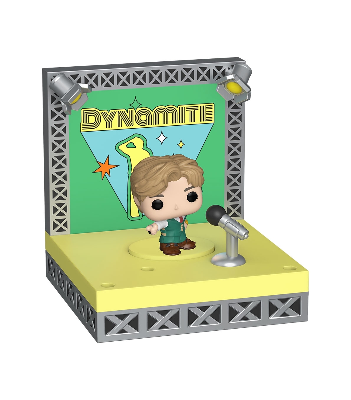 Bitty Pop! Stages, figuras de vinilo miniatura (2.5 cm) de Funko, diseñadas para coleccionar y exhibir. Destacan por incluir un escenario escénico temático —como la serie de BTS "Dynamite"