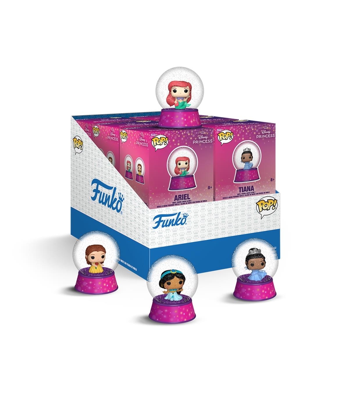 Funko Mystery Mini Snow Globes Princess (12 Unidades) - Disney Cada cajita incluye una figura al azar de unos 5,6 cm de altura. Presentación individual en caja cerrada. Ideal para venta en expositores. Distribución para tiendas y venta al por mayor. No apto para menores de 3 años.