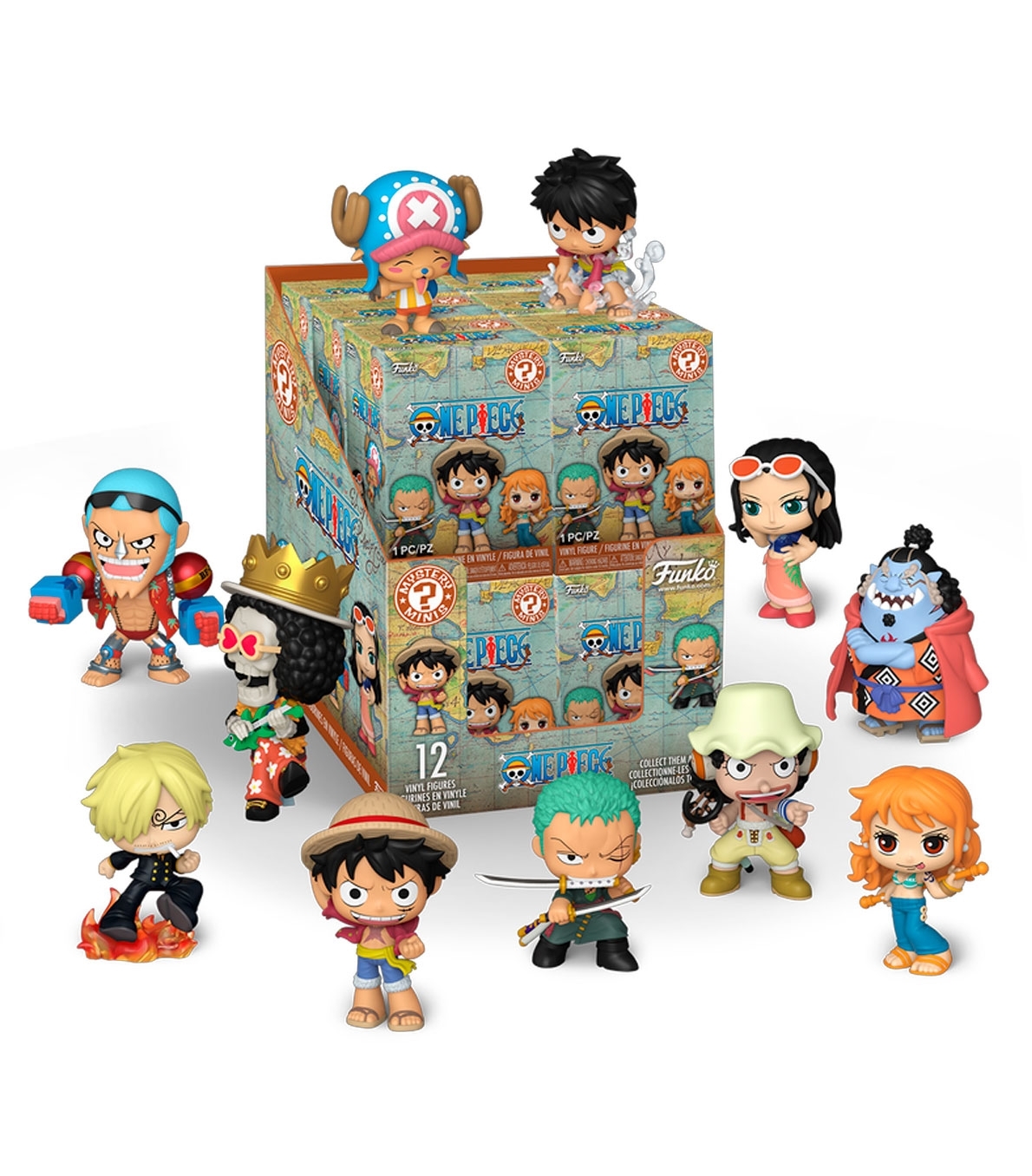 Funko Mystery Minis Fish-Man Island Saga - One Piece Cada cajita incluye una figura al azar de unos 6 cm de altura. El comprador no sabrá qué figura le ha tocado hasta que abra la caja. Cada display puede contener figuras duplicadas.