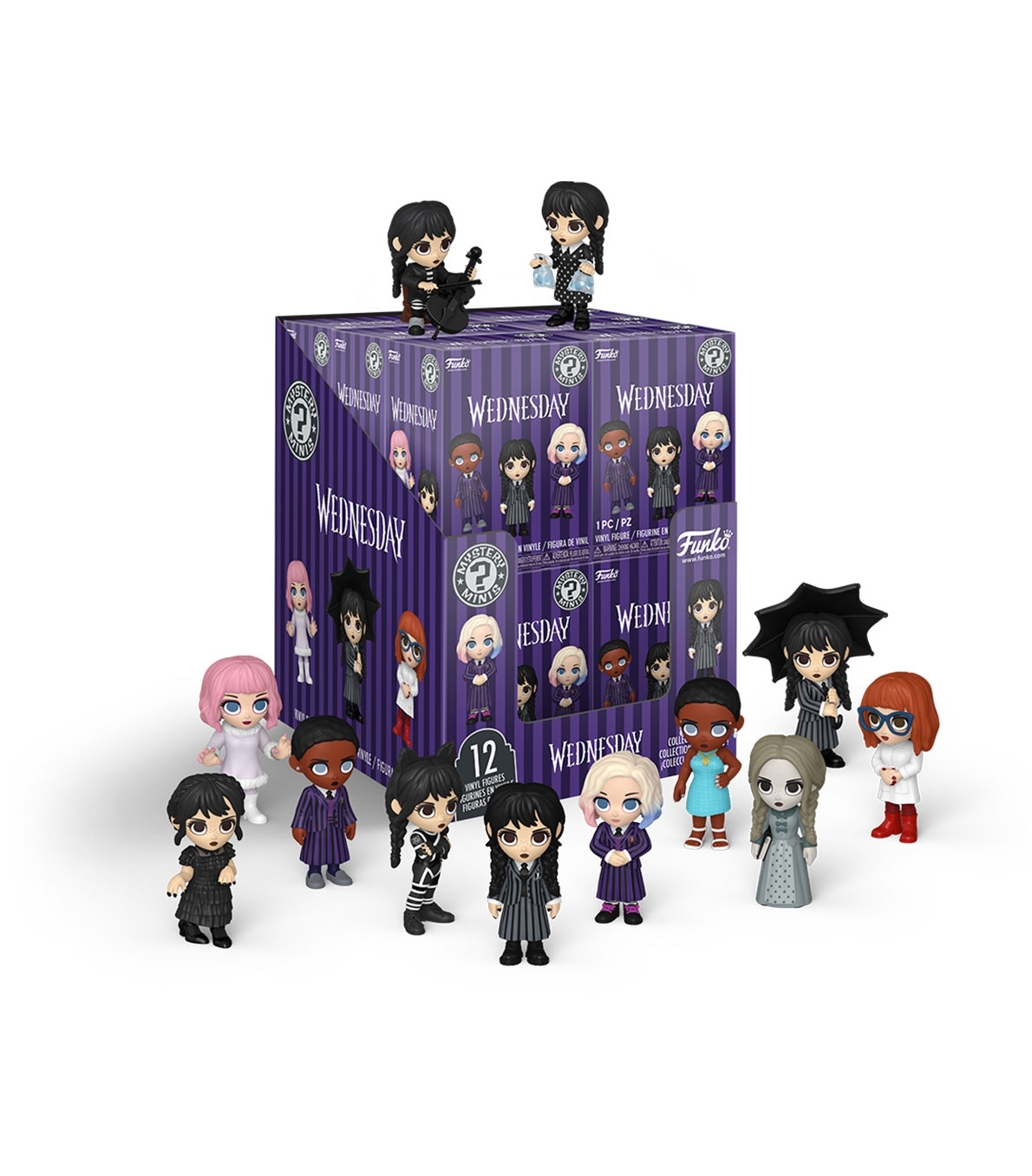 Funko Mystery Minis Wednesday (12 Unidades) - Miércoles Cada cajita incluye una figura al azar de unos 6 cm de altura. El comprador no sabrá qué figura le ha tocado hasta que abra la caja. Cada display puede contener figuras duplicadas.