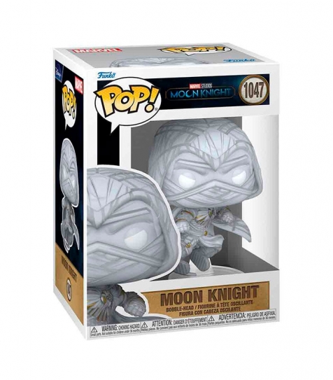 Figura Funko Pop Marvel Moonknight de Marvel en vinilo, en distribución. 10 cm de altura. Presentada en caja con ventana.