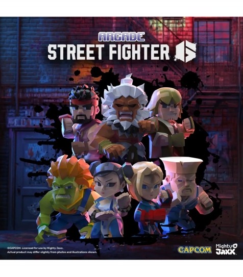 Pack de Figuras Capcom Street Fighter Series (10 cm) Street Fighter - Mighty Jaxx. Blindbox con personajes de Street Fighter 6 en estilo low-poly retro. Diseños basados en los trajes y aspecto oficial del videojuego. Ideal para coleccionistas y fans de los clásicos de recreativa. Expositor de 6 unidades sin repeticiones (figura rara no garantizada). Venta al por mayor para tiendas y distribución especializada.