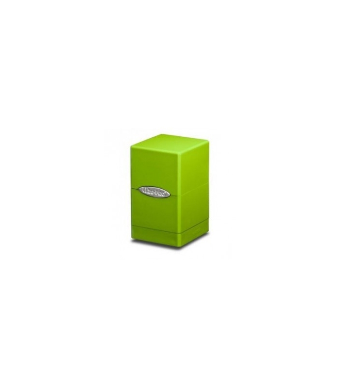 Caja para mazo de cartas Satin Tower de la marca Ultra Pro. De gran calidad y solidez. Color Verde Lima. Para 100 cartas de tamaño standard enfundadas. Para juegos como Magic the Gathering o Force of Will. Con un compartimento inferior para accesorios Acabado satinado suave. Recubrimiento UV brillante.