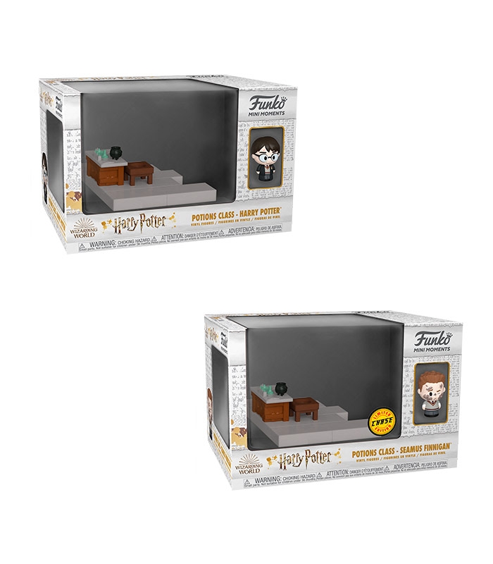 Figura Funko Pop Mini Moment HP Anniversary - Harry w/Seamus Chase (Case 5+1) en vinilo, en distribución. Harry Potter. 5 cm de altura. Presentada en caja con ventana.
