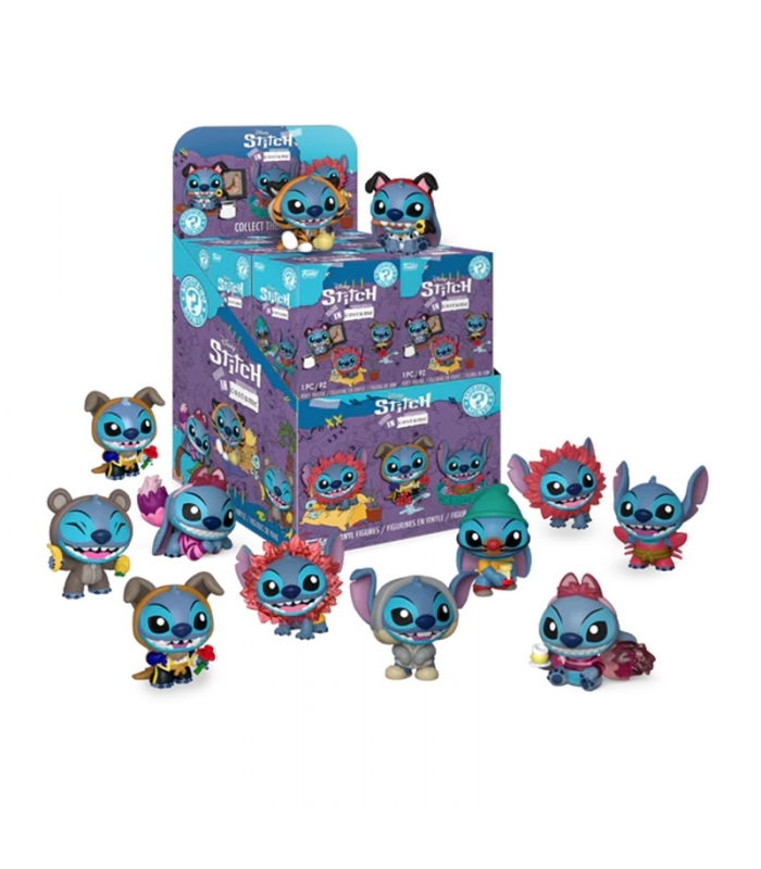 Funko Mystery Minis Stitch in Costume Display (12 unidades) - Lilo & Stitch Cada cajita incluye una figura al azar de unos 6 cm de altura. El comprador no sabrá qué figura le ha tocado hasta que abra la caja. Cada display puede contener figuras duplicadas.