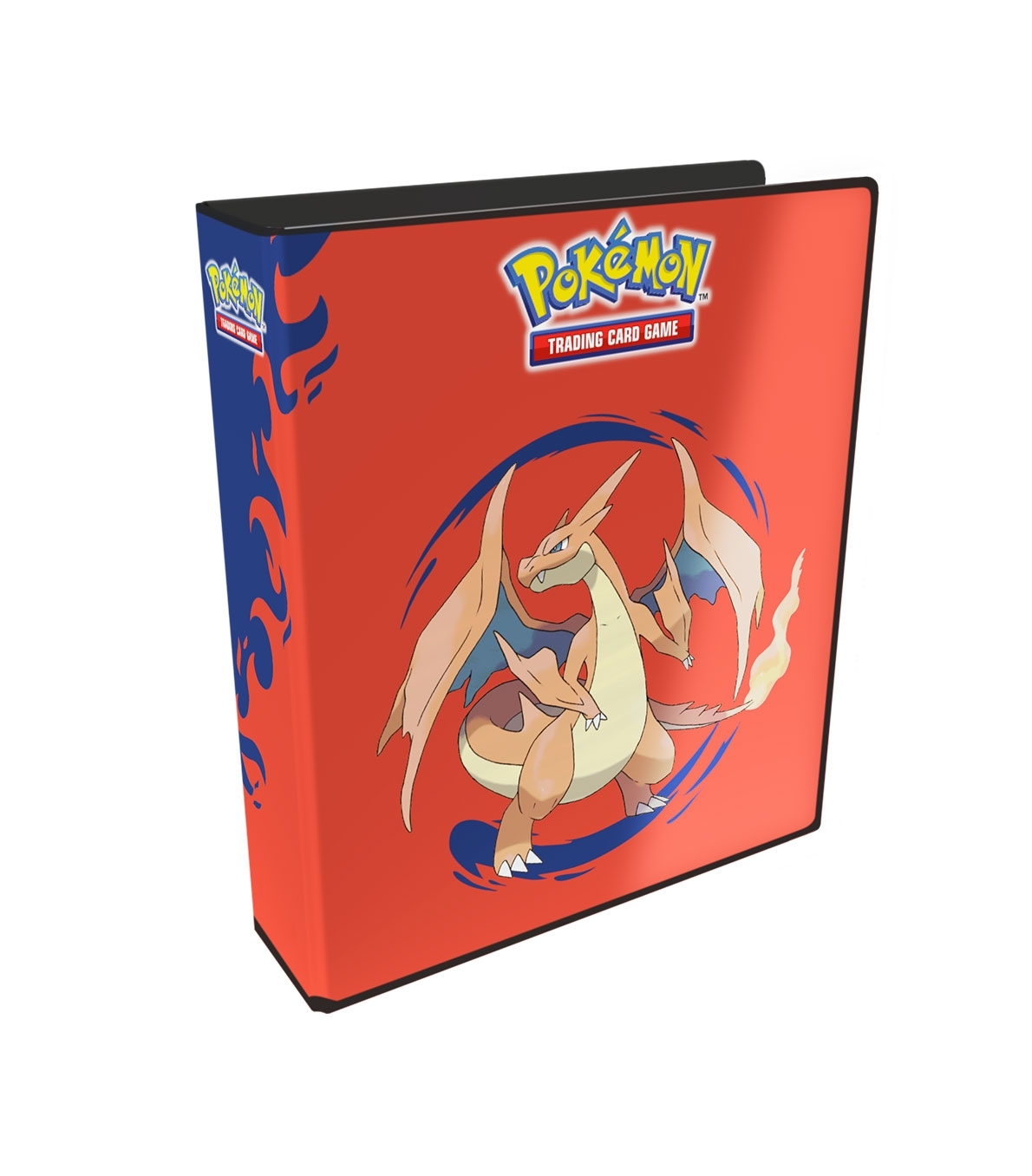 Álbum de anillas de 2" para el juego de cartas coleccionables Pokémon con diseño a todo color de Mega Charizard X y Mega Charizard Y. Equipado con anillas en D de 2", ideal para grandes colecciones de páginas o para organización escolar. Fabricado en California (EE.UU.). Las páginas se venden por separado. Produto orientado a distribución y venta al por mayor en tiendas especializadas.