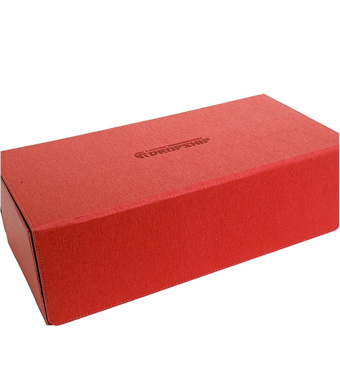 Caja Dropship Legion SENTINEL con capacidad para 1000 cartas enfundadas doble. Diseño modular adaptable a distintos tamaños de deck box y tapetes. Dos compartimentos interiores forrados en microfibra suave. Tapa completamente desmontable con cierre magnético de alta resistencia. Cubierta exterior de vinilo texturizado, ideal para distribución y venta al por mayor.