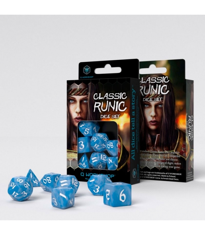 Dados Classic Runic Azul & Blanco (7 unidades)  - Q Workshop
