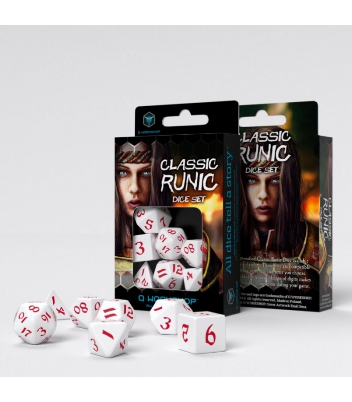 Dados Classic Runic Blanco & Rojo (7 unidades)  - Q Workshop