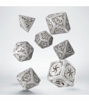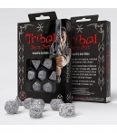 Set de dados Tribal Gris y Marrón – Q WORKSHOP. Diseño exclusivo de Anne Stokes con patrones tribales en cada cara. Incluye 7 dados poliédricos: D4, D6, D8, D10, D00, D12 y D20. Fabricados en material perlado blanco con grabado marrón. Ideal para tiendas especializadas en rol y coleccionismo. Distribución al por mayor para comercios y distribuidores.