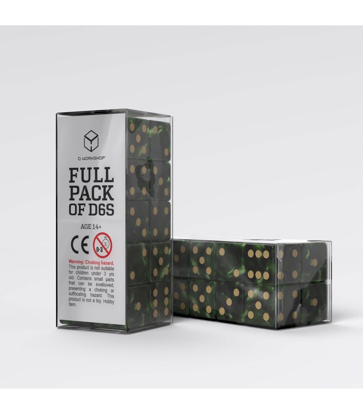 Dados Full Pack of D6s Verde y Oro (20 unidades) - Q Workshop