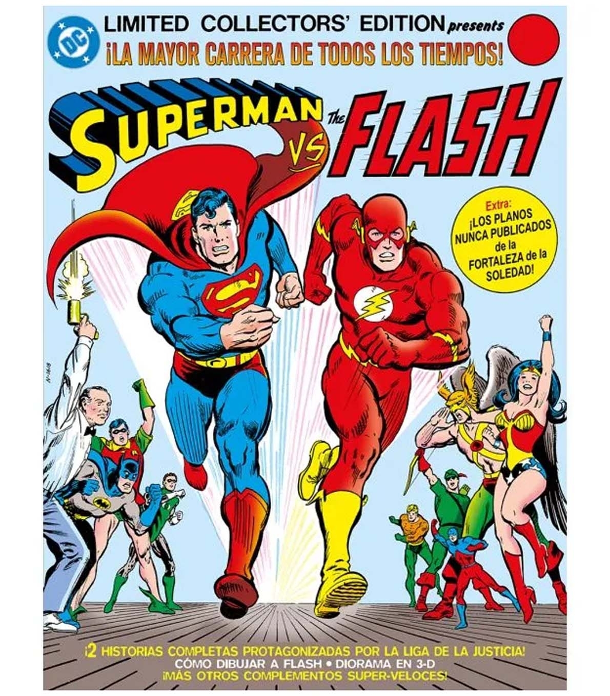 ¡Prepárate para las mayores carreras de todos los tiempos! Esta edición facsímil a tamaño gigante recoge dos increíbles competiciones de Superman y Flash por demostrar quién de los dos es el más rápido. Con la Liga de la Justicia como invitados, los planos secretos de la Fortaleza de la Soledad, un tutorial para dibujar a Flash y mucho más. ¡Tienes que llevártelo a casa antes de que se agote!