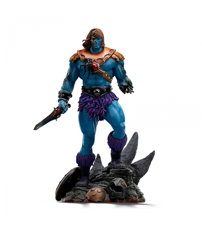 Figuras Faker - 22 cm de Iron Studios. Basada en la famosa licencia Masters of the Universe. Muñeco de gran calidad,. Estatua de Faker a escala 1/10, fabricada en polirresina de alta calidad. Representa al androide impostor de He-Man en una pose dinámica, con detalles meticulosos y pintura realista. Incluye base temática. Ideal para tiendas y distribuidores especializados en coleccionables de Masters of the Universe.
