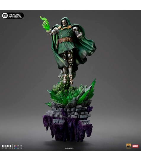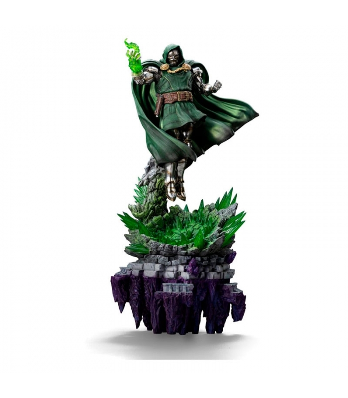 Figura de Doctor Doom (30 cm) de Iron Studios, fabricada en polystone, un compuesto de resina de poliuretano con aditivos de piedra en polvo que proporciona un acabado similar a la piedra. Pintada a mano, muestra al icónico villano de Marvel en una pose imponente, con capa, armadura metálica y base escénica detallada. Producto oficial, ideal para tiendas especializadas en figuras premium, superhéroes y coleccionismo.