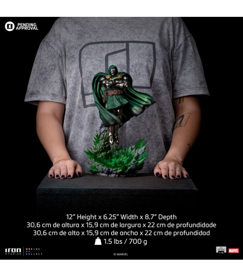 Figura de Doctor Doom (42 cm) de Iron Studios, fabricada en polystone, un compuesto de resina de poliuretano con aditivos de piedra en polvo que proporciona un acabado similar a la piedra. Pintada a mano, representa al legendario villano de Marvel con un alto nivel de detalle, en una versión deluxe con base escénica que realza su poder y presencia. Producto oficial, ideal para tiendas centradas en figuras premium, superhéroes y coleccionismo.