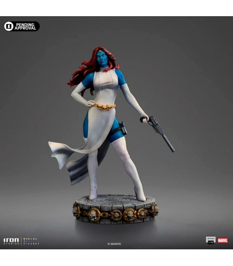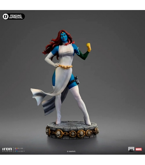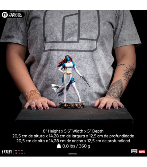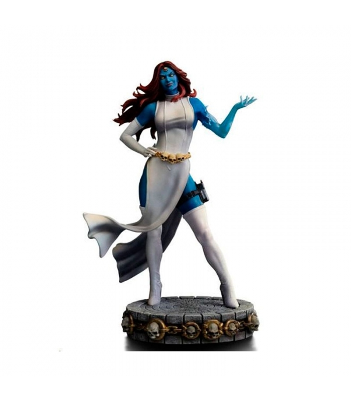 Figura de Mystique (20 cm) de Iron Studios, fabricada en polystone, un compuesto de resina de poliuretano con aditivos de piedra en polvo que proporciona un acabado similar a la piedra. Pintada a mano, representa a la mutante de los X-Men en una pose dinámica, capturando su habilidad metamórfica y actitud desafiante. Incluye base escénica detallada. Producto oficial Marvel, ideal para tiendas de coleccionismo, cómic y cultura pop.