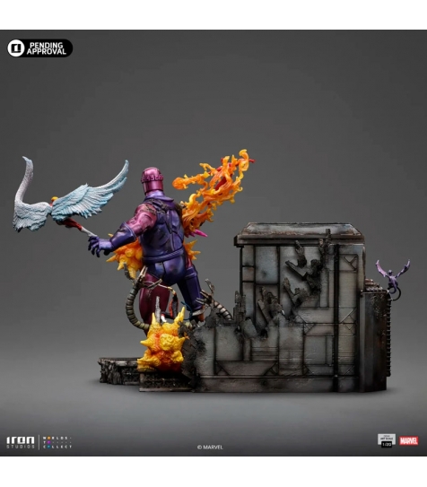Figura X-Men Danger Room B (43 cm) de Iron Studios, fabricada en polystone, un compuesto de resina de poliuretano con aditivos de piedra en polvo que ofrece un acabado similar a la piedra. Pintada a mano, presenta una escena dinámica con varios miembros de los X-Men en acción, sobre una base escénica que recrea la sala de entrenamiento más icónica del universo Marvel. Producto oficial, ideal para tiendas especializadas en figuras premium, superhéroes y cultura pop.