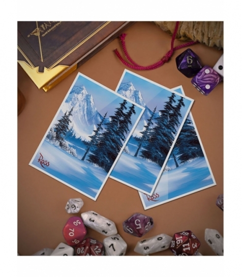 Fundas APEX 100 uds. - Bob Ross: Winter Paradise - Ultra Pro. Pack de 100 fundas con arte texturizado de Bob Ross. Fórmula easy-shuffle para barajar con mayor fluidez. Frontal transparente brillante, ideal para cartas foil. Fabricadas en polipropileno seguro para archivo, sin ácido ni PVC. Tamaño estándar: 63,5 x 88 mm. Distribución para tiendas y venta al por mayor.