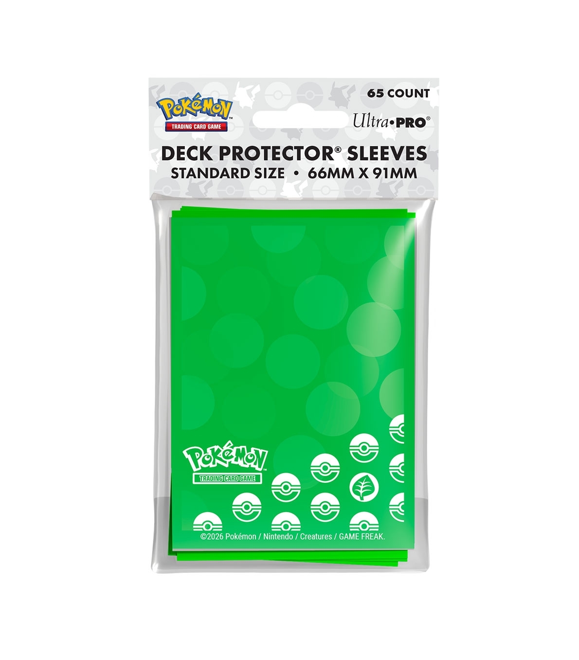Fundas Deck Protector de tipo Planta para Pokémon TCG, fabricadas por Ultra PRO. Cada pack incluye 65 unidades de tamaño estándar (66 x 91 mm), compatibles con cartas enfundadas. Incorporan tecnología ChromaFusion que evita el pelado y garantizan protección durante el juego o almacenamiento. Acabado mate para una experiencia sin reflejos. Materiales seguros para archivo, sin ácido ni PVC. Producto oficial para distribución y venta al por mayor.