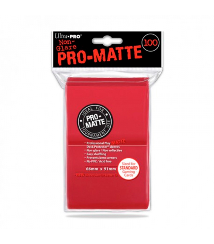 Fundas Pro Matte Ultra Pro de tamaño estándar 66x91 para juegos de cartas como Magic the Gathering, Pokémon o El Señor de los anillos. Color Rojo Paquete de 100.