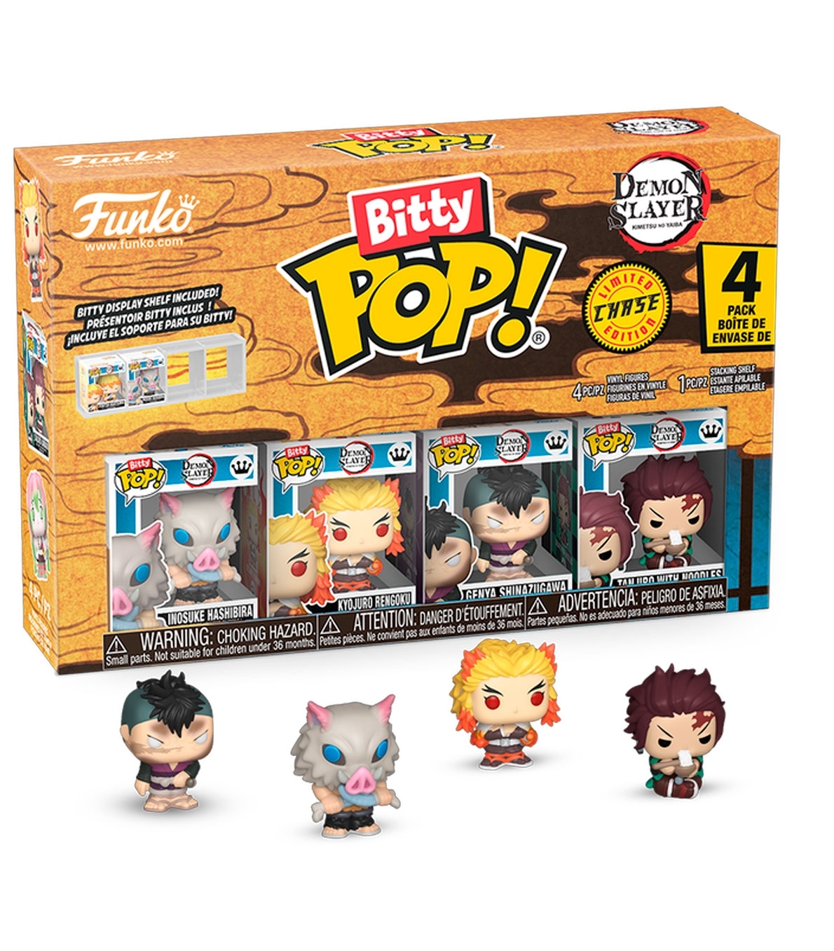 Funko Bitty POP! 4-Pack Pack Series 3 Demon Slayer - Kimetsu no Yaiba Figura en vinilo de aproximadamente 2,3 cm de altura. Presentado en caja con ventana.