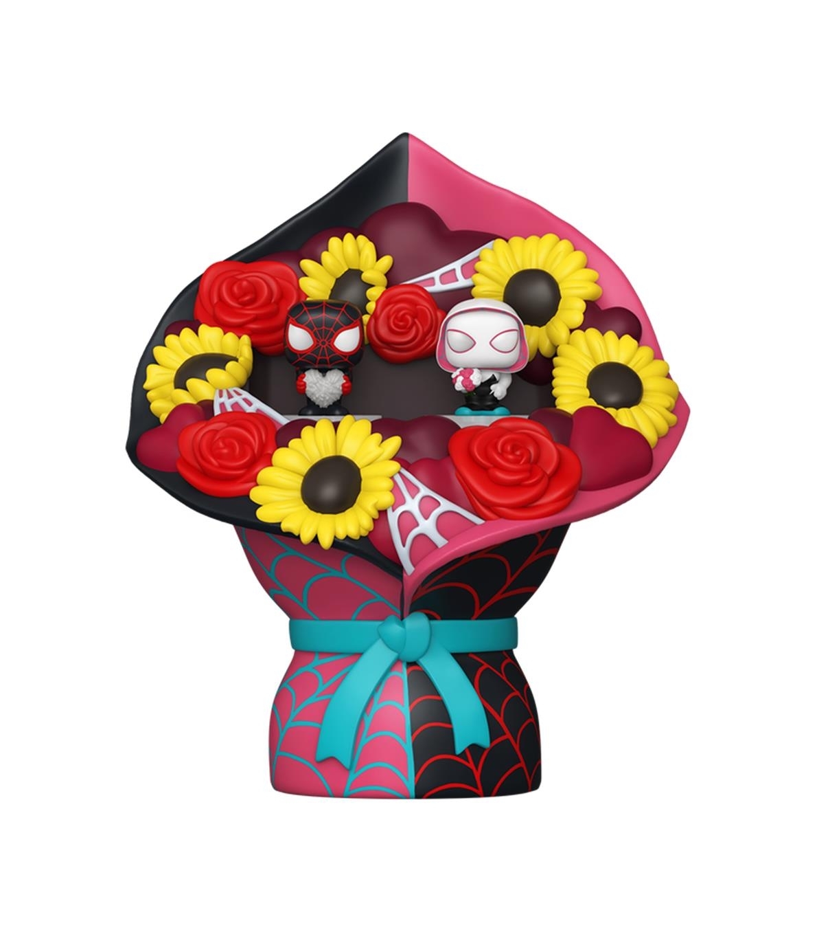 Funko Bitty POP! Bouquet Mile Morales & Ghost Spider (Valentine) - Marvel Incluye: 2 figuras. Figuras de vinilo de 2,3 cm en estuche acrílico con base extraíble. Altura del ramo: 10,9 cm. Ideal para venta al por mayor y distribución especializada.